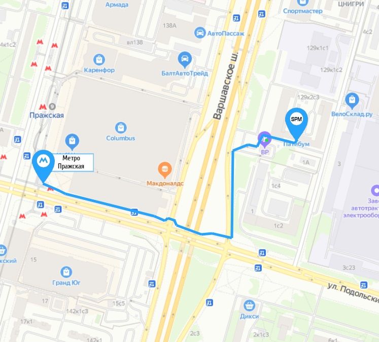 Схема прохода к офису от м. Пражская: